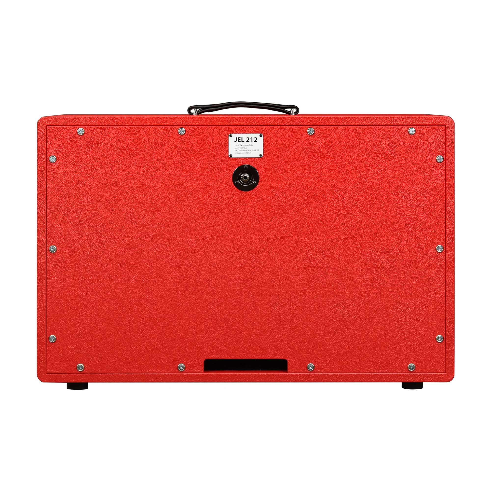 The Friedman JEL 2x12” is a rear ported closed-back extension cabinet which utilizes tongue and groove Baltic Birch construction to deliver the bass, mid response and great sound you would expect from a Friedman cab. The JEL 212 Cab features red tolex, white piping and black grille cloth, designed to cosmetically match the Friedman Signature Jake E Lee heads.